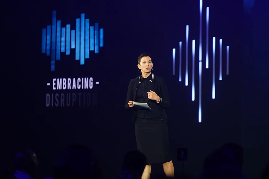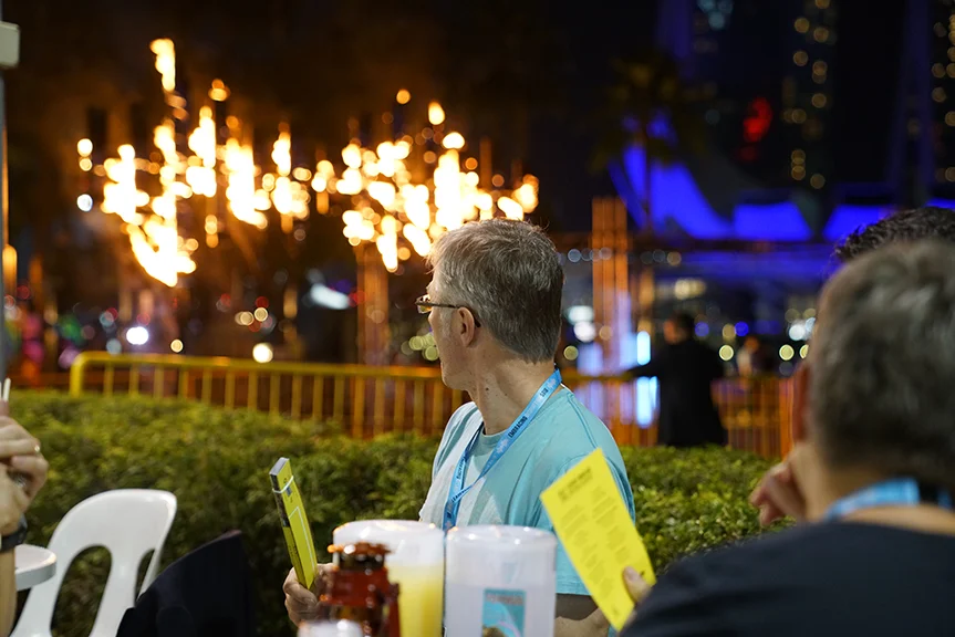 SCHEDULED FOR A ROTATION IN SINGAPORE, DENTSU INTERNATIONAL WANTED SOMETHING MORE INTERESTING FOR THE ANNUAL EXECUTIVE CONFERENCE. RUNNING WITH THE THEME OF EMBRACING DISRUPTION, THE EVENT PRESENTED AN OPPORTUNITY TO DESIGN AND PRODUCE BEYOND THE USUAL CORPORATE PARAMETERS. TOWARD THAT END, THE STANDARD HOTEL CONFERENCE ATMOSPHERE WAS DISRUPTED WITH LARGE SCULPTURAL EXTRUSIONS OF THE EVENT LOGO AND MORE DRAMATIC AND INTENTIONAL LIGHTING AND VIDEO TO ENHANCE PRESENTATIONS. ENGINEERING A CONTRAST TO THEIR DAILY SCHEDULE, ATTENDEES BOARDED TRADITIONAL FERRIES AND CROSSED THE BAY TO THE MAKANSUTRA FOOD COURTS–WITNESSING THE VISCERAL, BURNING LOGO TOTEM AS THEY APPROACHED.
